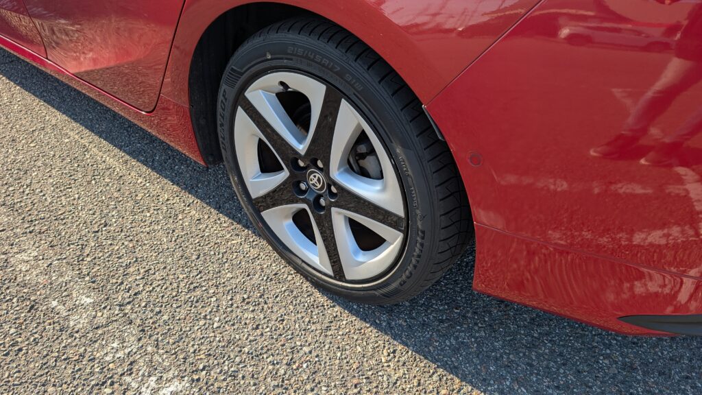 交換にかかる時間は約30分くらいでした。夏用の17インチタイヤはスタイリッシュでカッコイイですね。